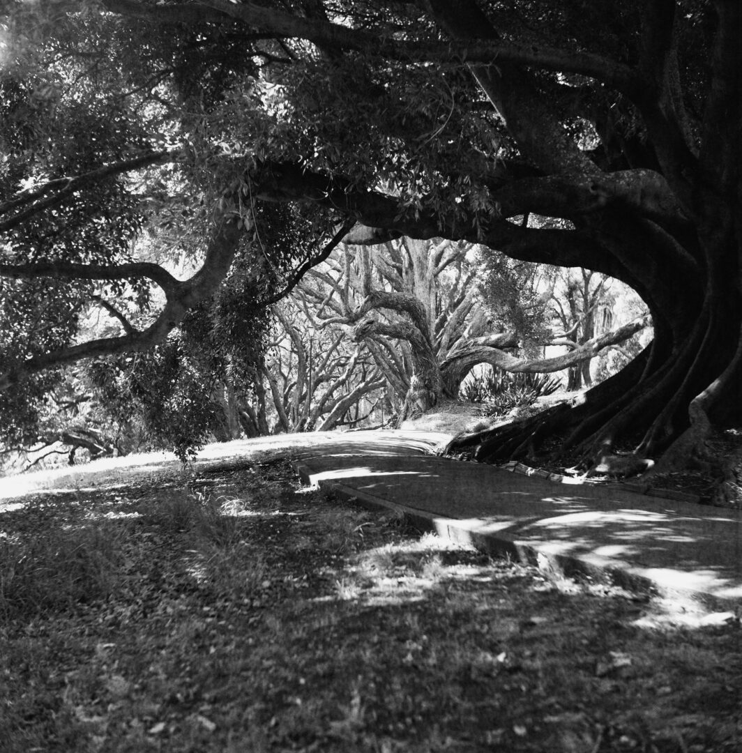 anderswo: auckland april 2019, analoge mittelformatkamera, film entwickelt jänner 2025, 89,5 x 89,5 cm, s/w fine art print auf german etching, ed. 5/5